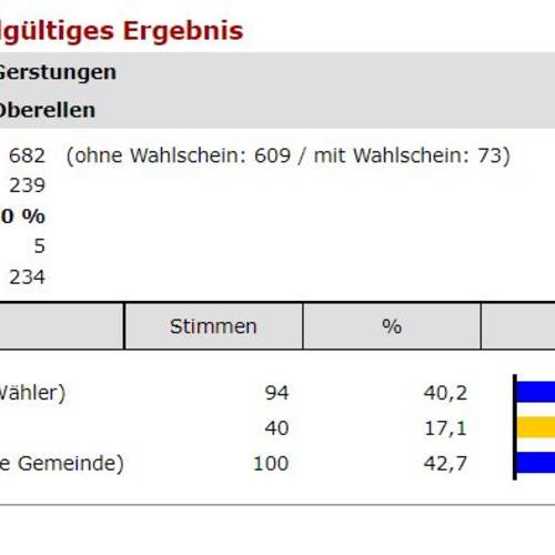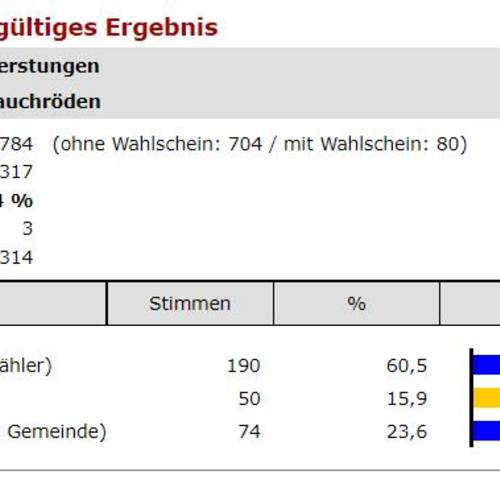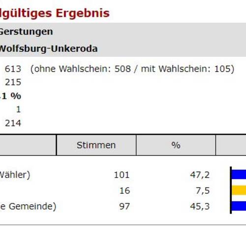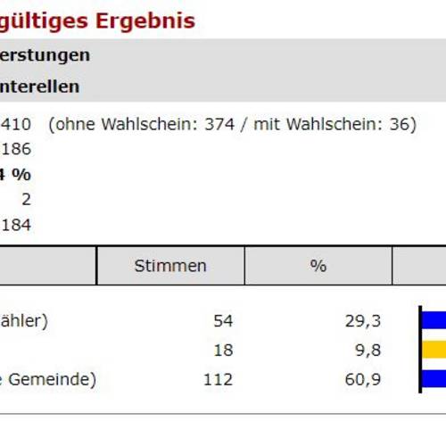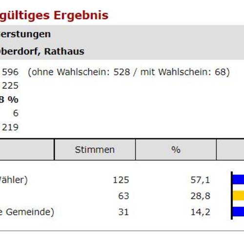 Die Aufrechnung der Ergebnisse sämtlicher Stimmbezirke einschließlich des Ergebnisses der Briefwahl ergab folgendes Gesamtergebnis: