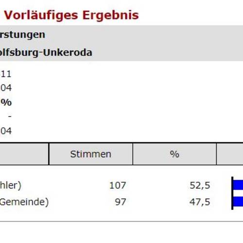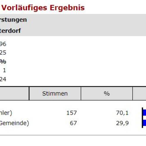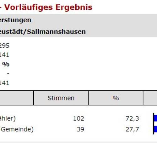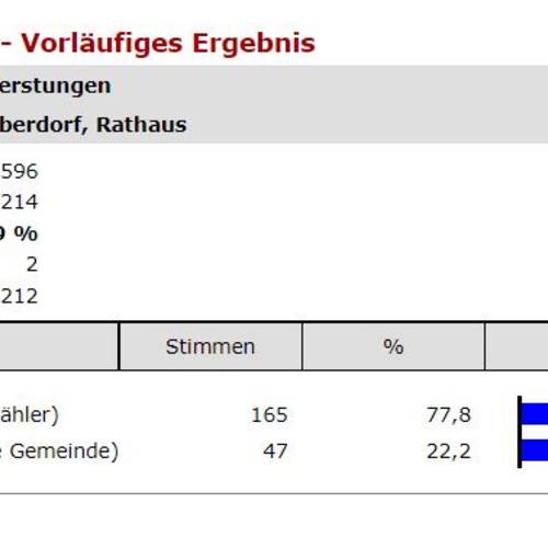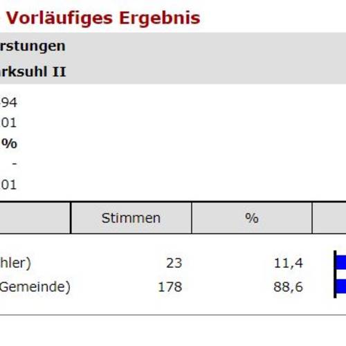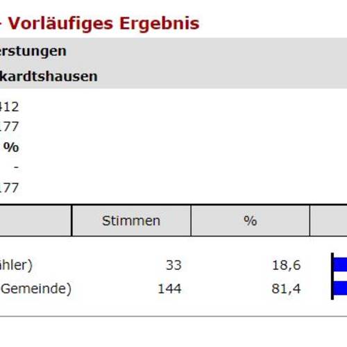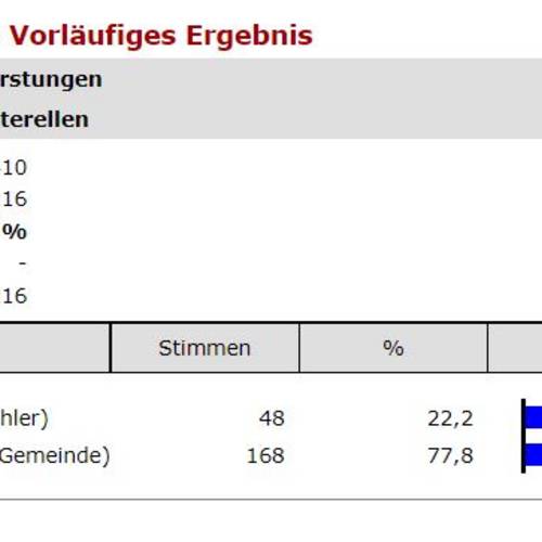 Die Aufrechnung der Ergebnisse sämtlicher Stimmbezirke einschließlich des Ergebnisses der Briefwahl ergab folgendes vorläufiges Gesamtergebnis: