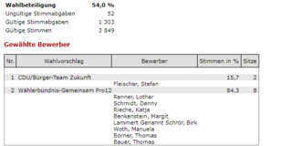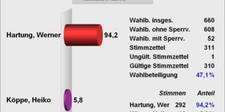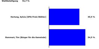 Mehr als die Hälfte der abgegebenen gültigen Stimmen entfallen auf den Bewerber Tim Rommert.