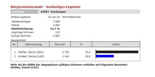 VORLÄUFIGES Ergebnis der Bürgermeisterwahlen in der Gemeinde Gerstungen am 25. Februar 2024 um 18.36 Uhr