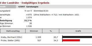Wir geben das endgültige Wahlergebnis (einschließlich der Stimmbezirksergebnisse) der Gemeinde GERSTUNGEN bekannt: