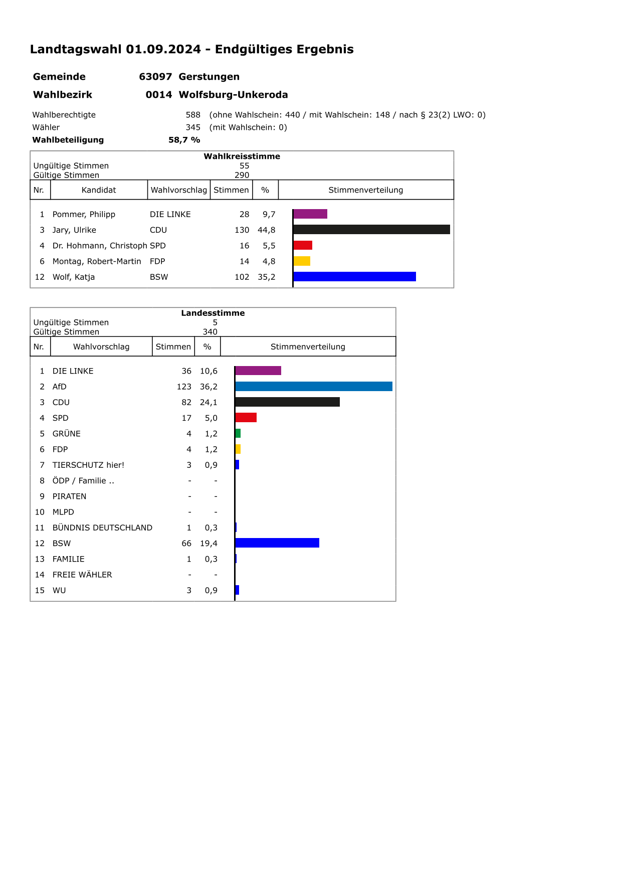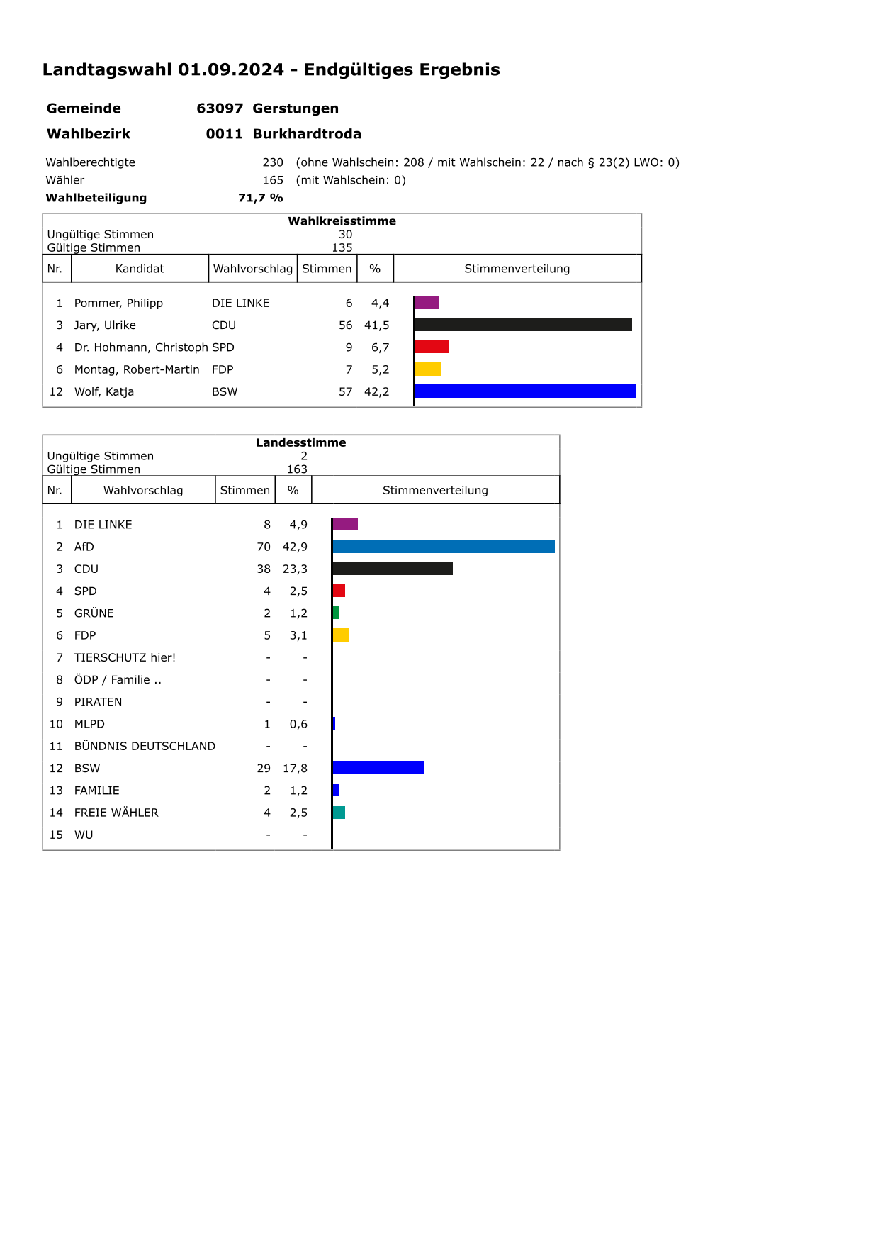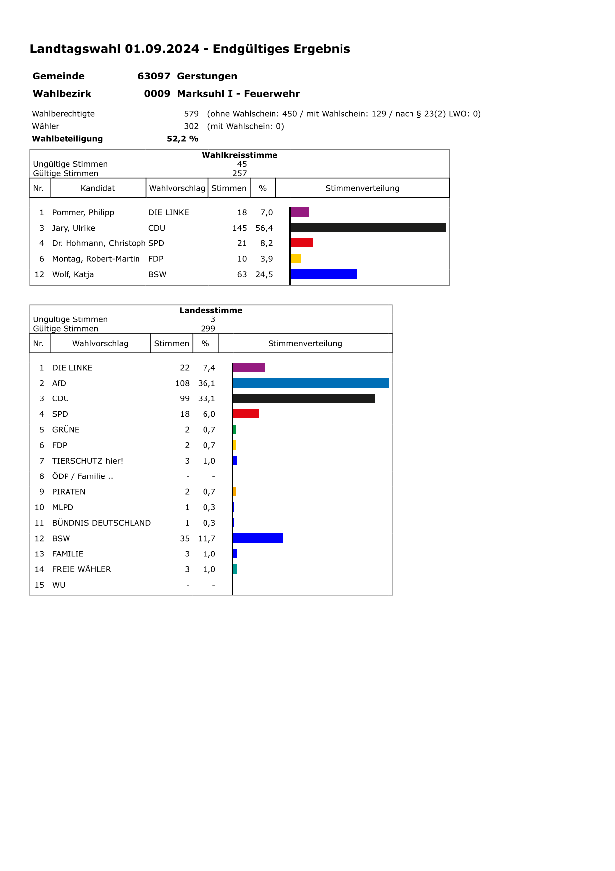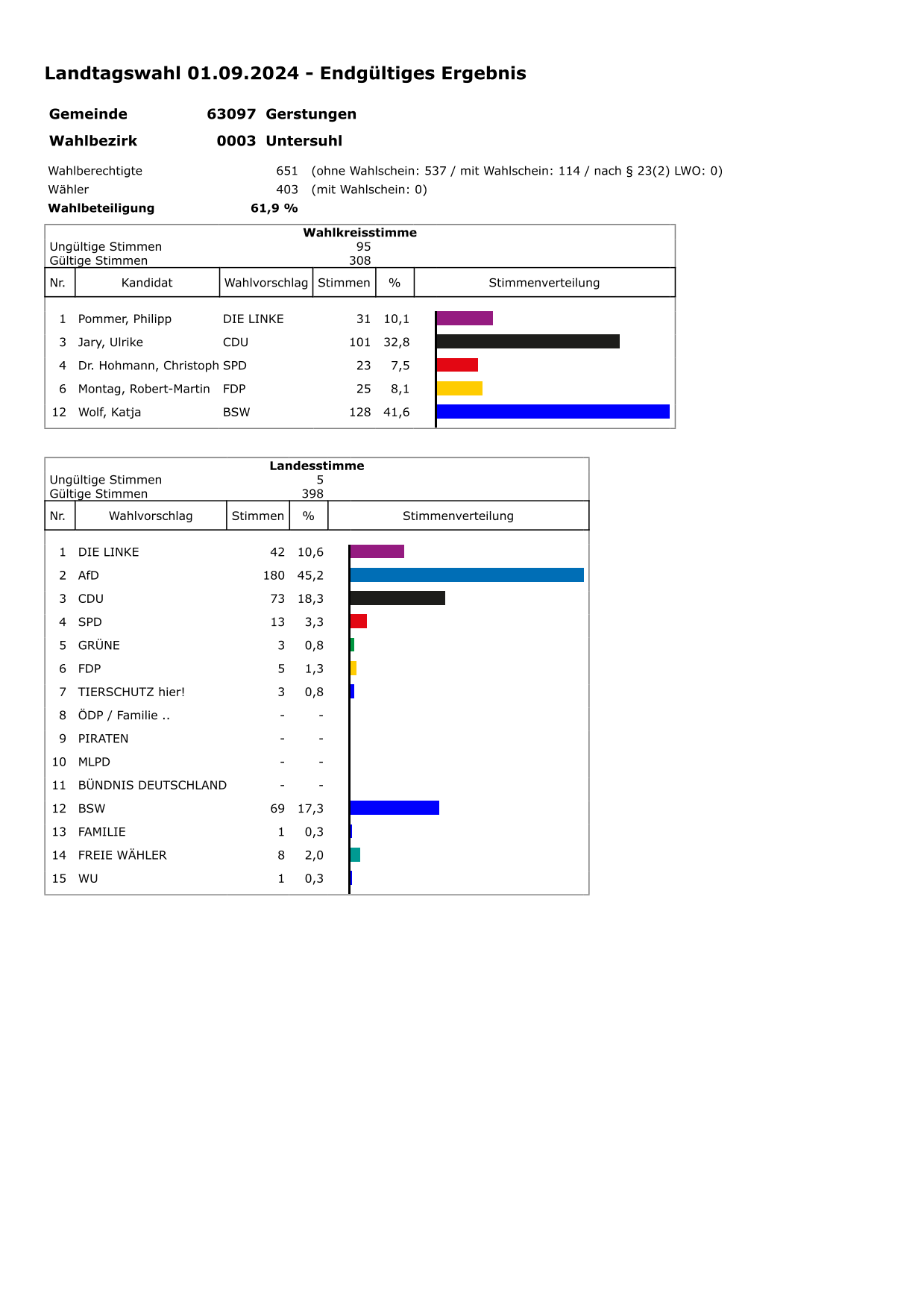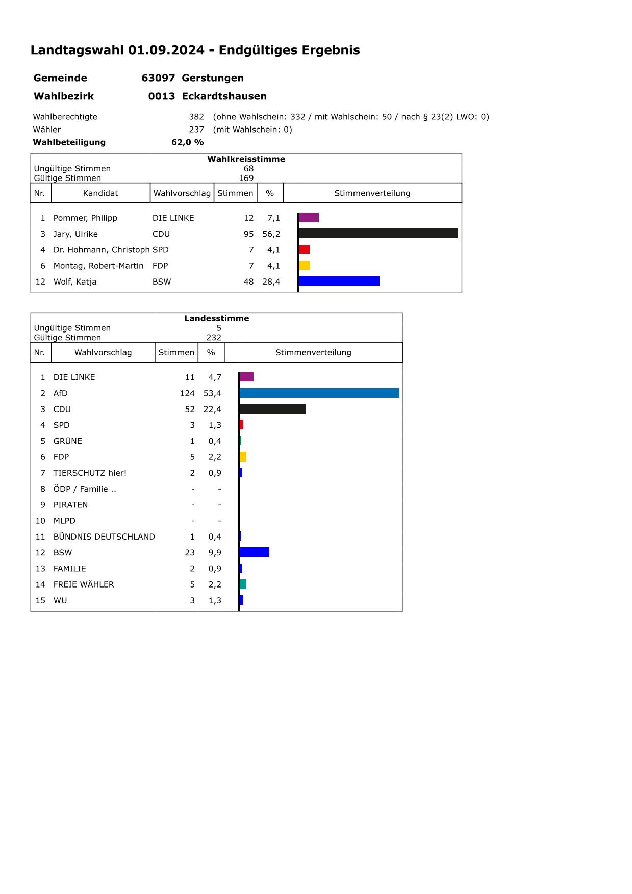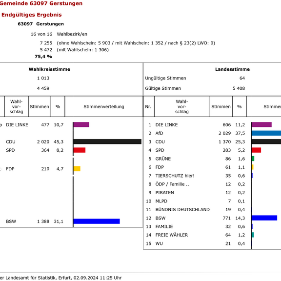 Endgültige Wahlergebnisse der Landtagswahlen in der Gemeinde Gerstungen