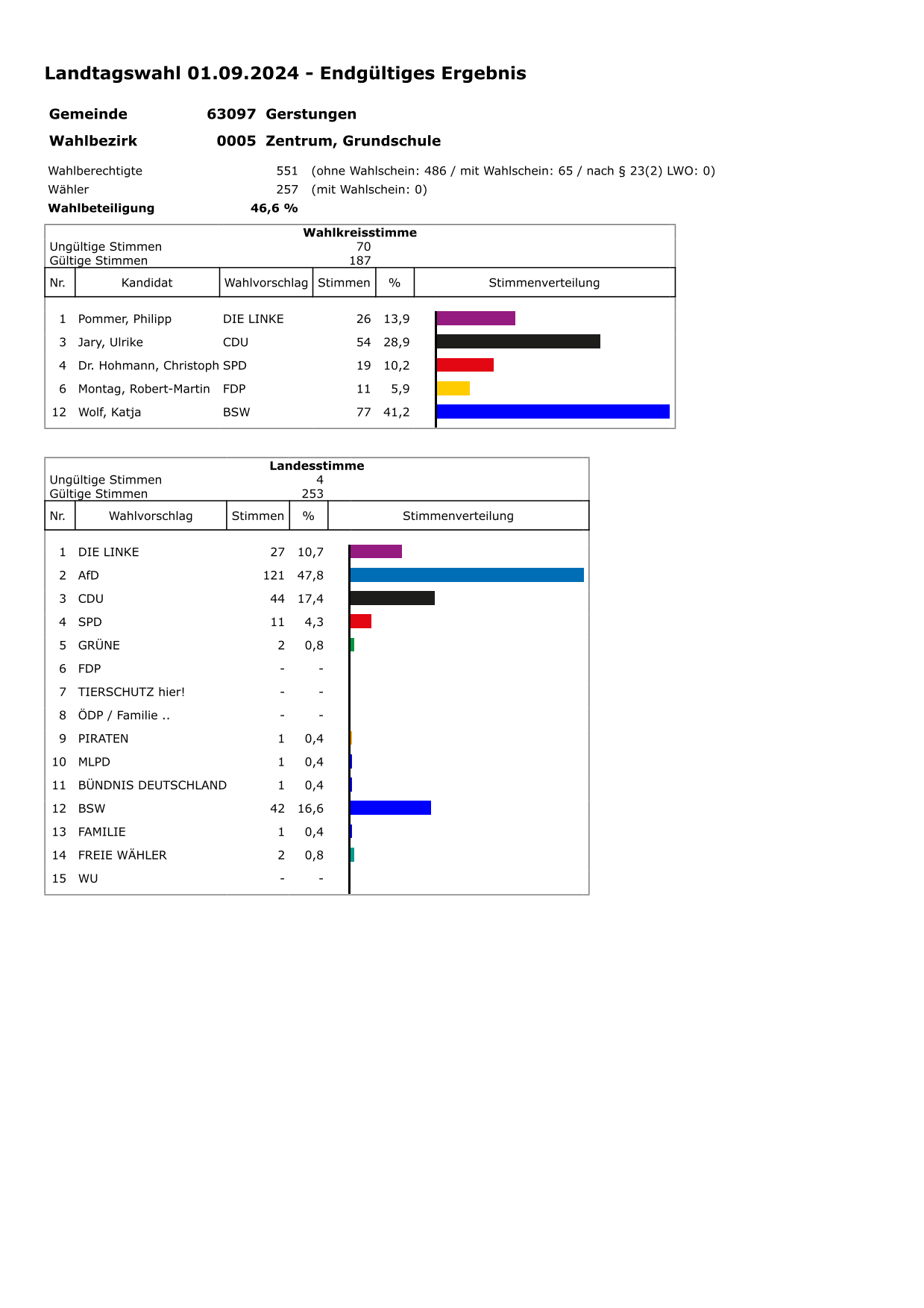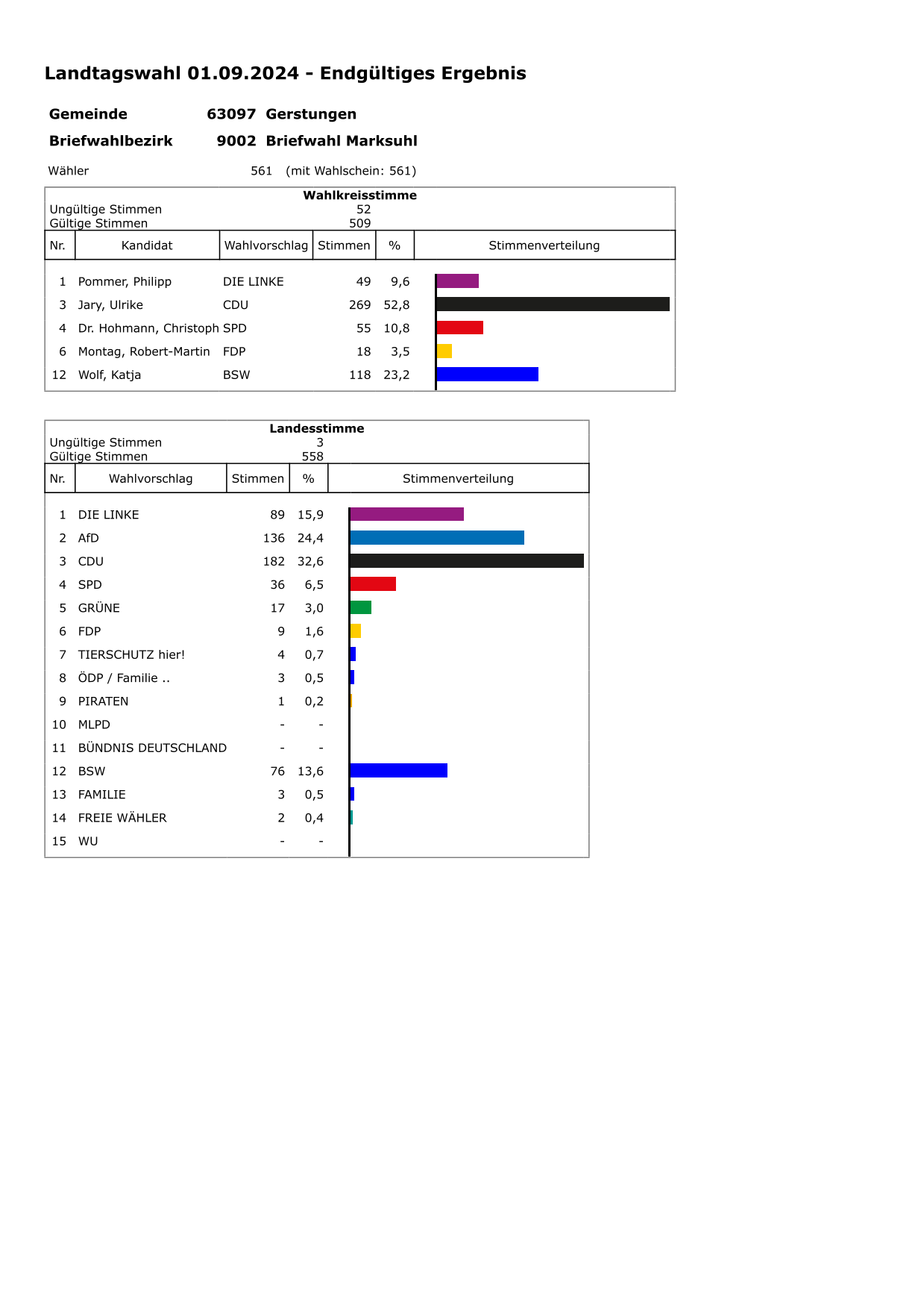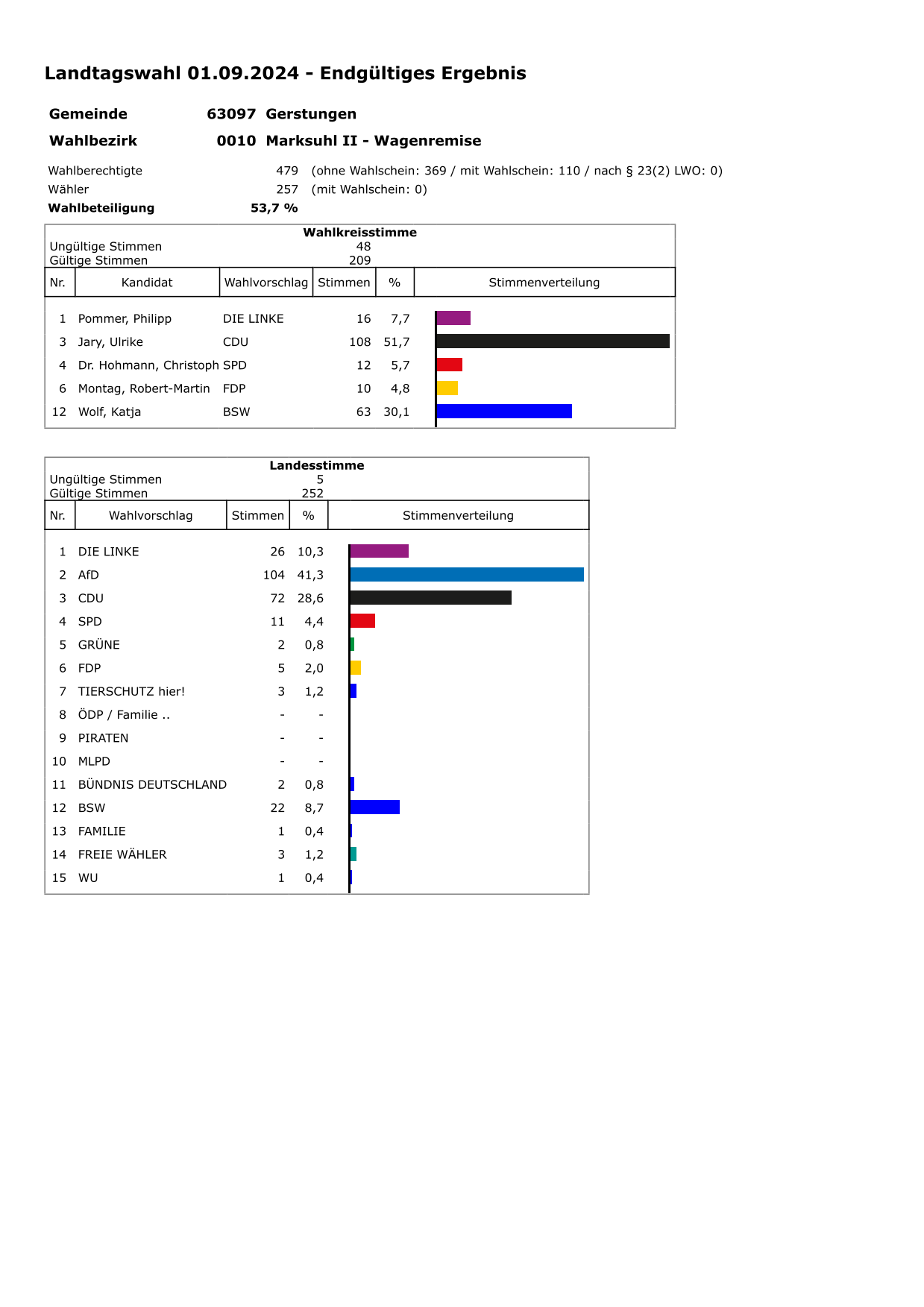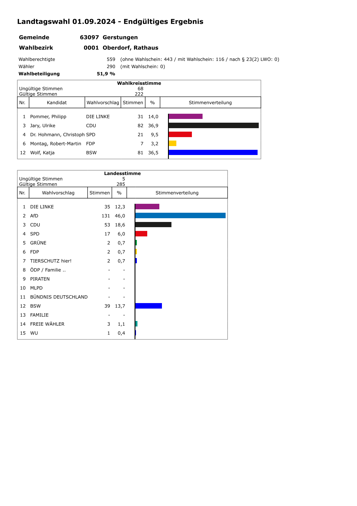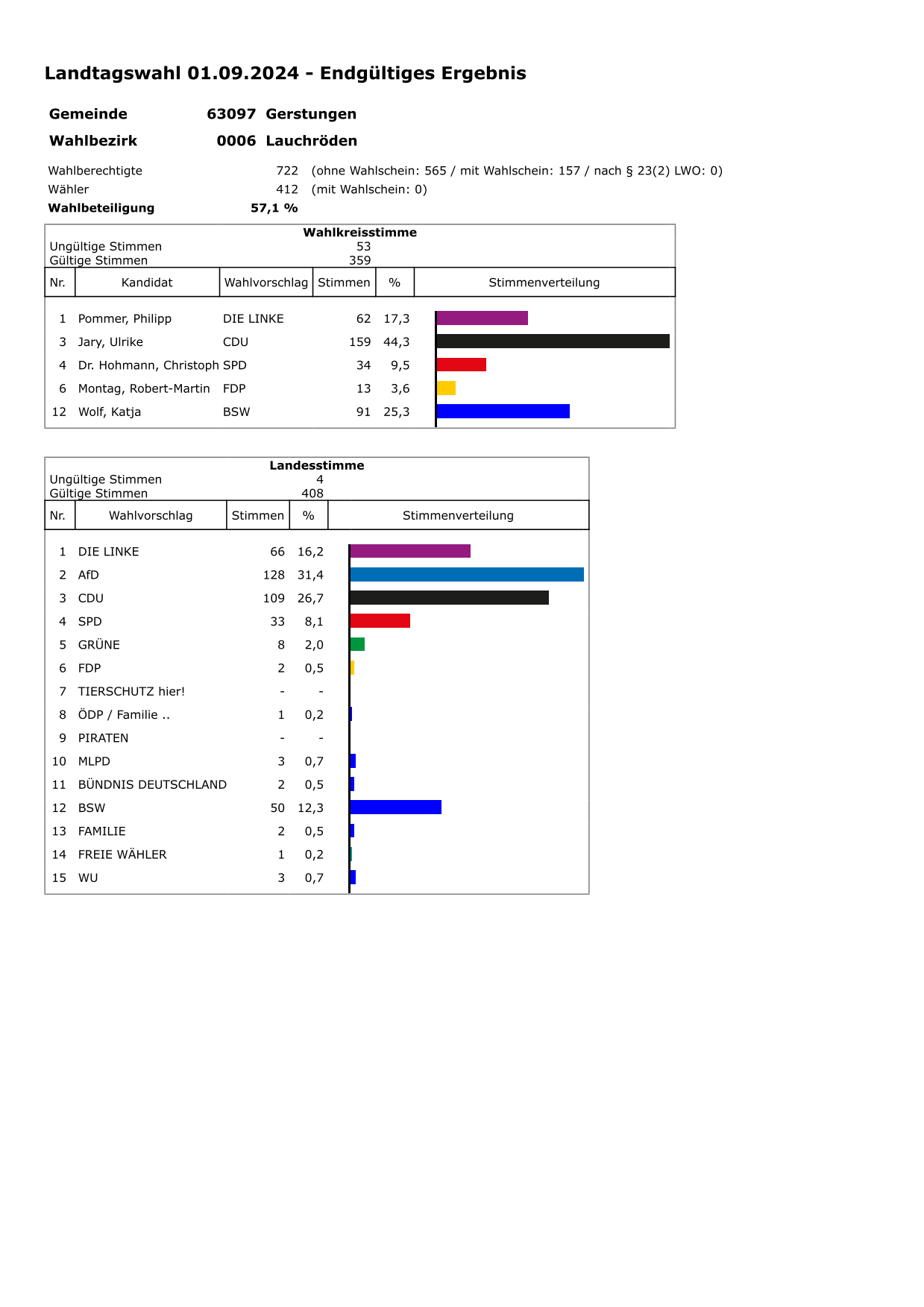 Endgültige Wahlergebnisse der Landtagswahlen in der Gemeinde Gerstungen