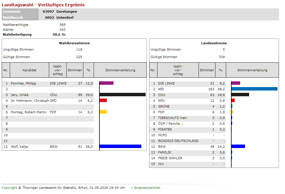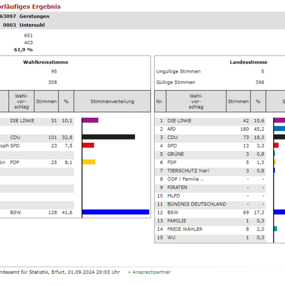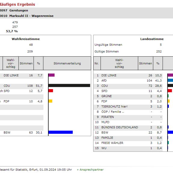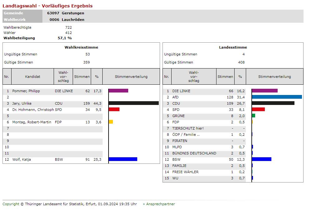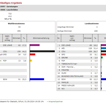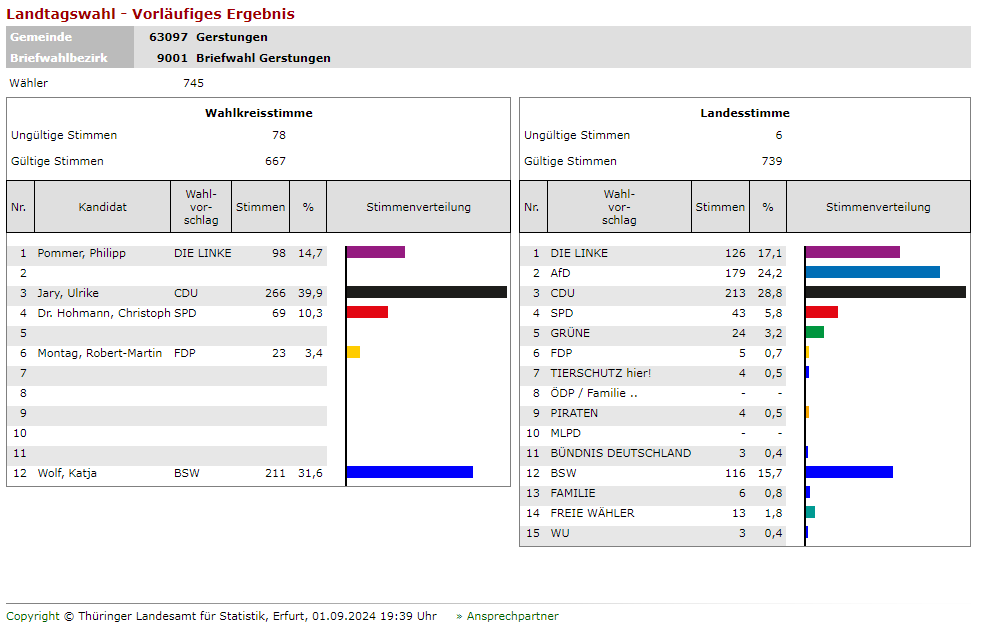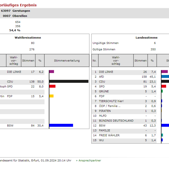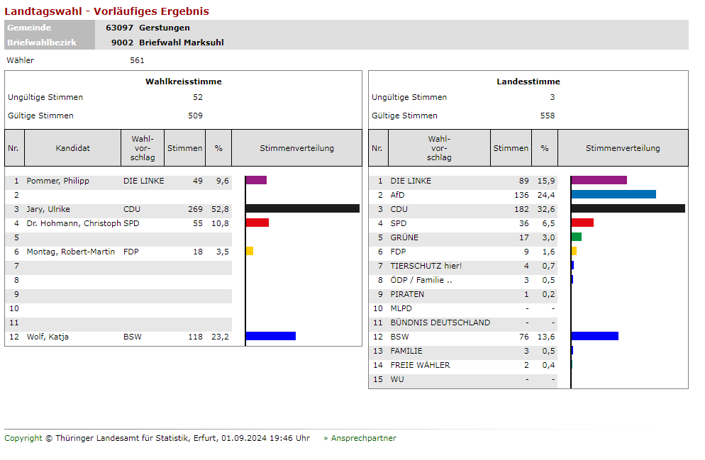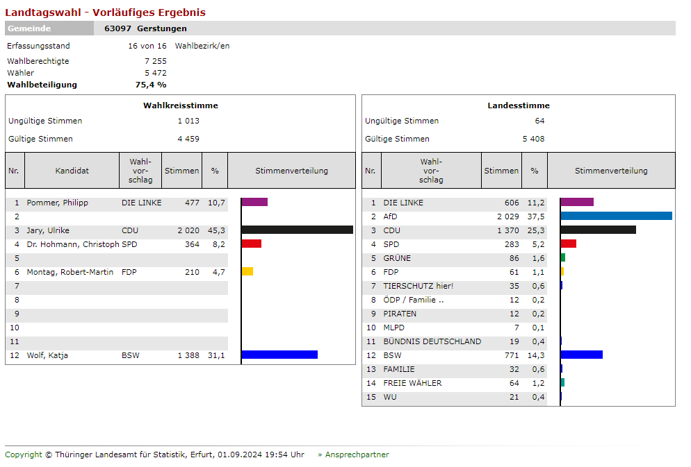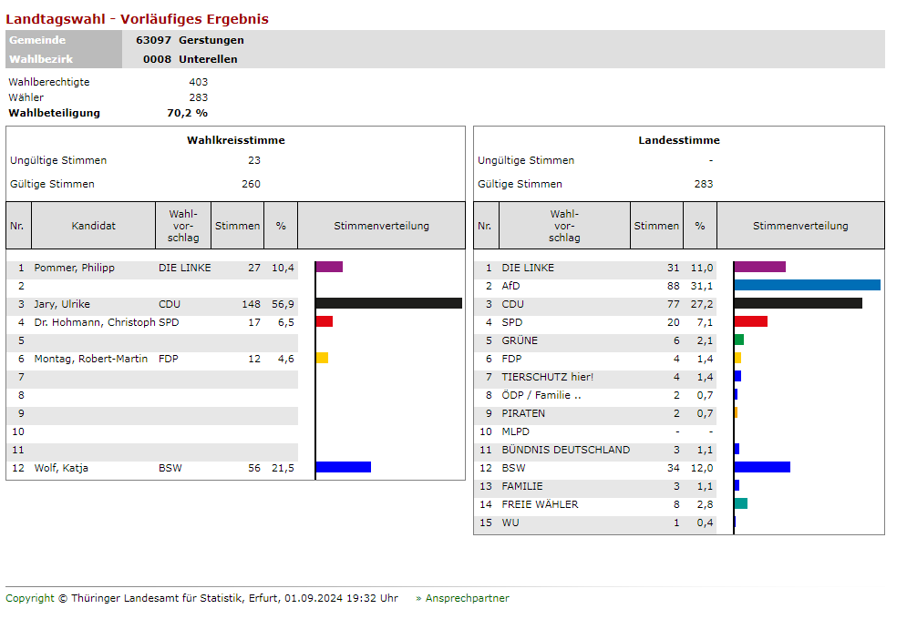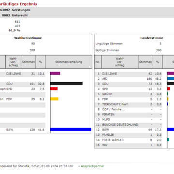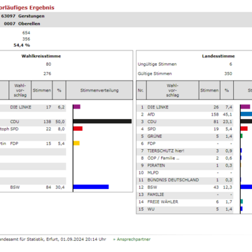 Vorläufige Wahlergebnisse der Landtagswahlen in der Gemeinde Gerstungen