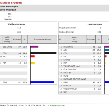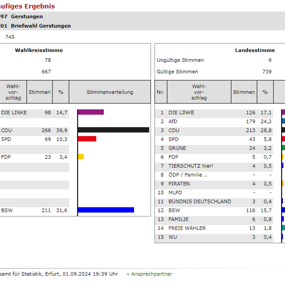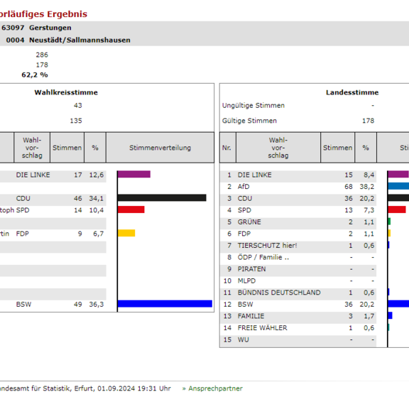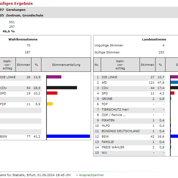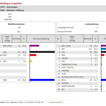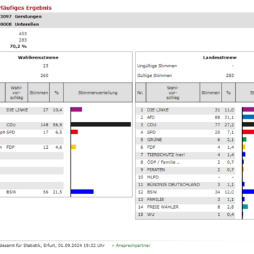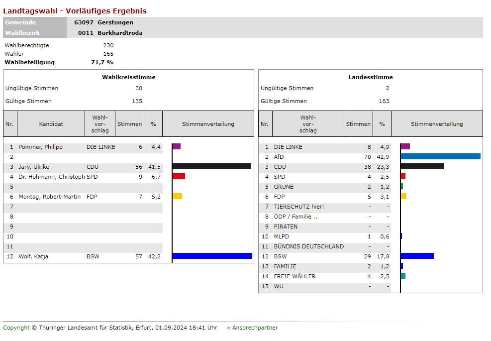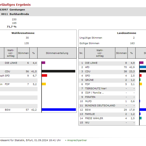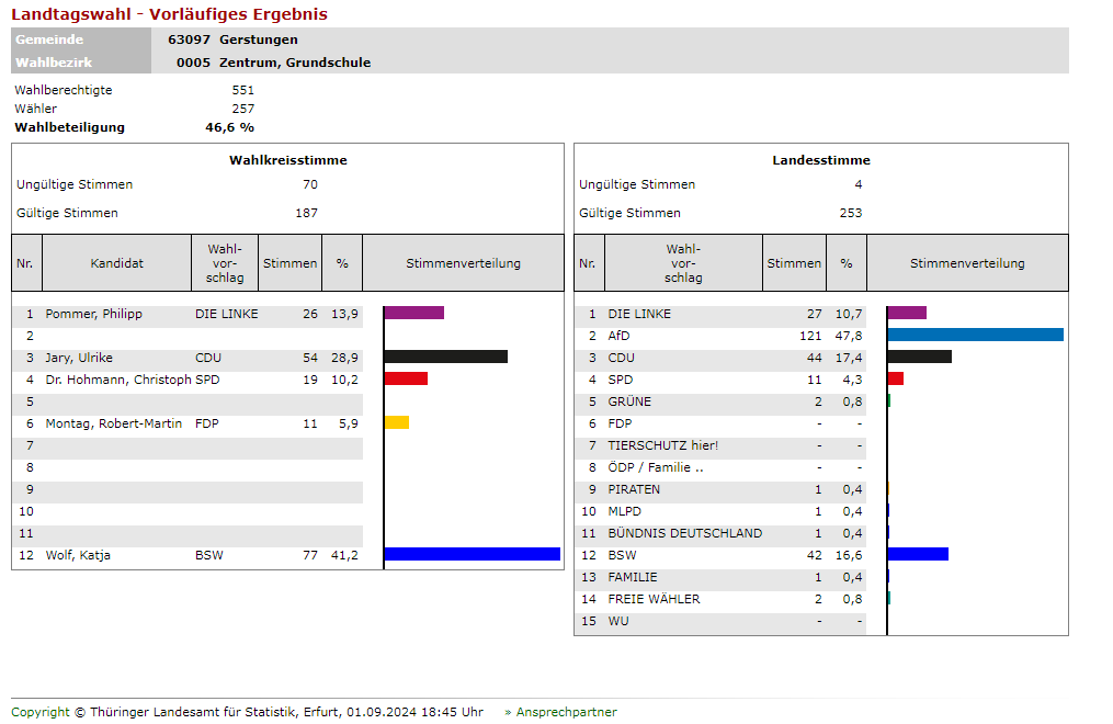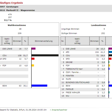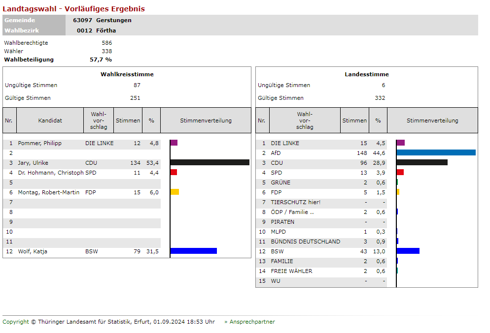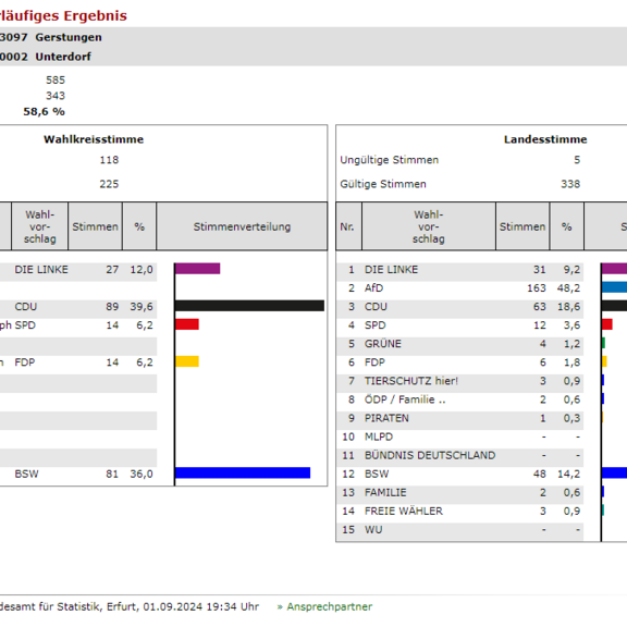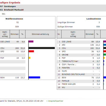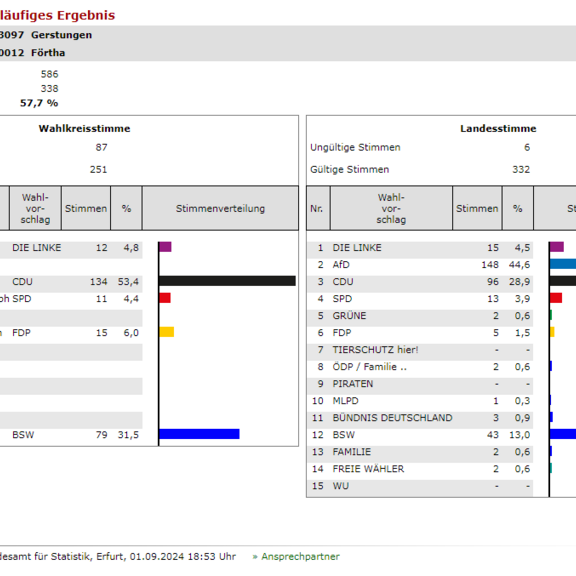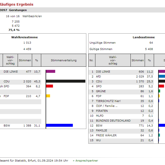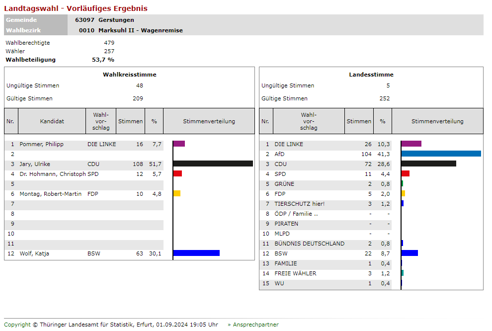 Vorläufige Wahlergebnisse der Landtagswahlen in der Gemeinde Gerstungen