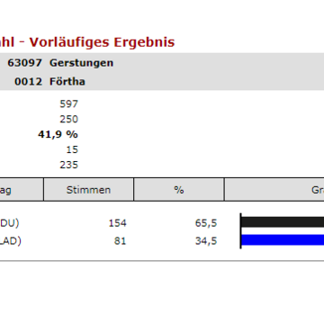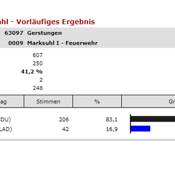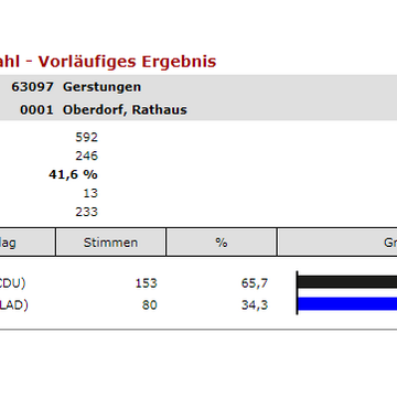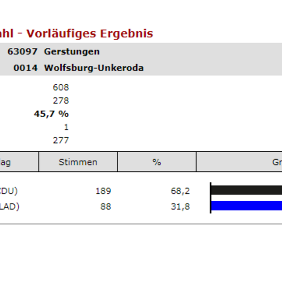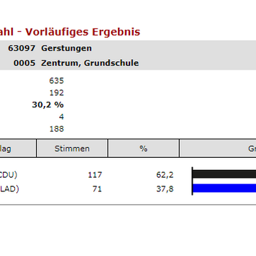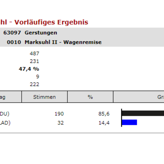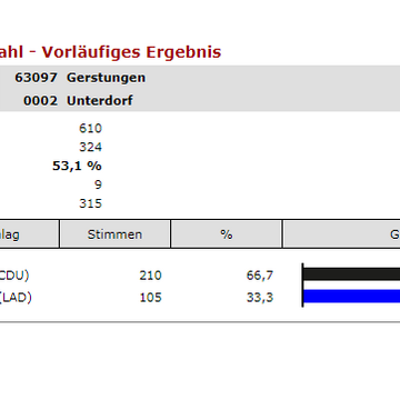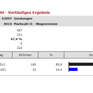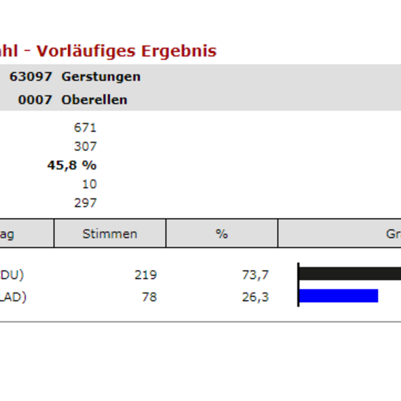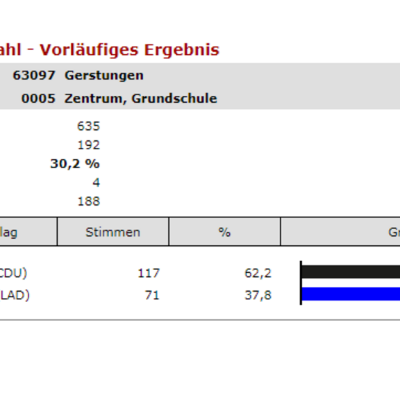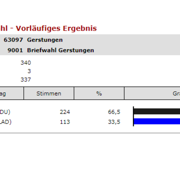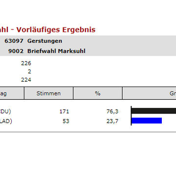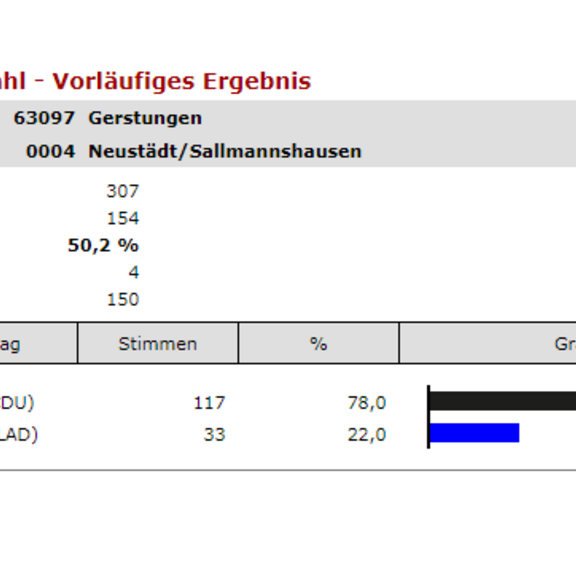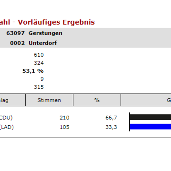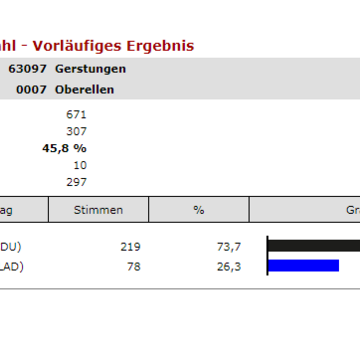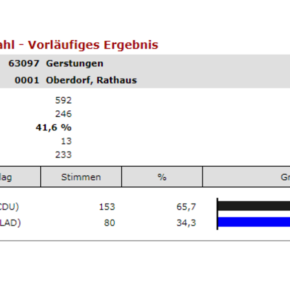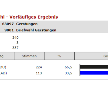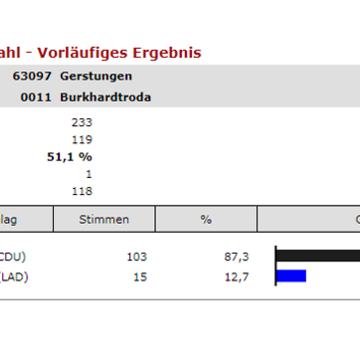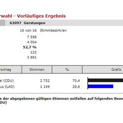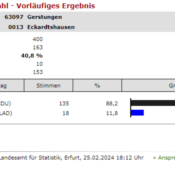 VORLÄUFIGES Ergebnis der Bürgermeisterwahlen in der Gemeinde Gerstungen am 25. Februar 2024 um 18.36 Uhr