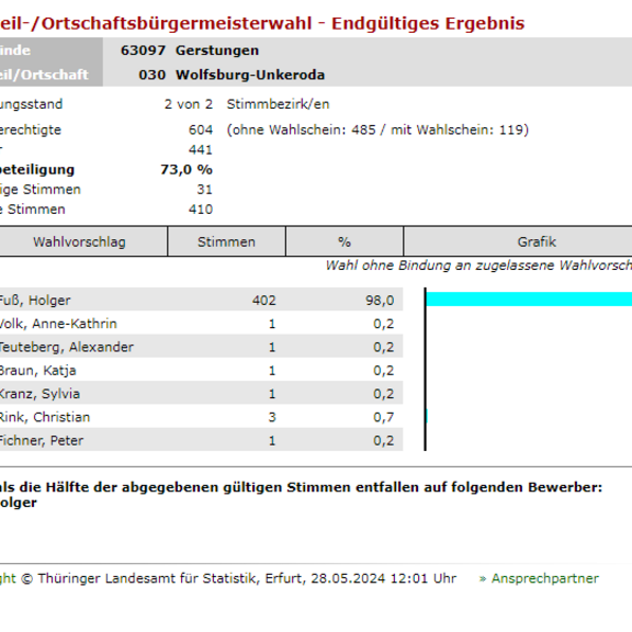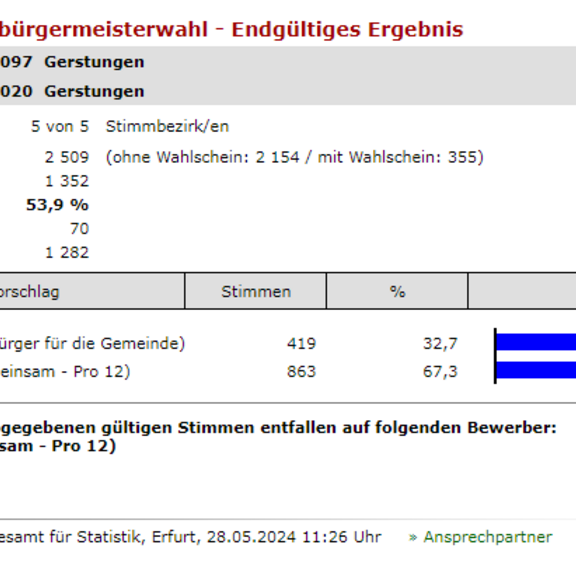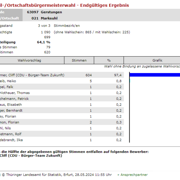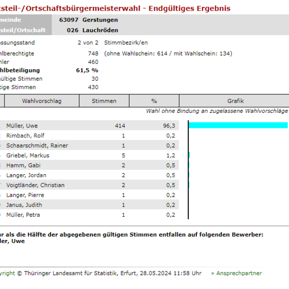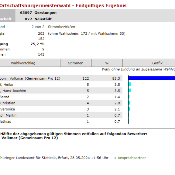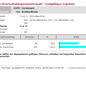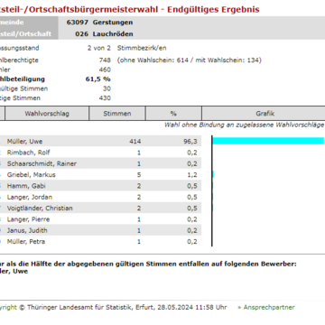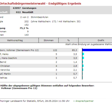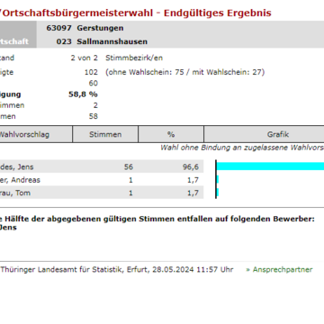 Wahlergebnisse der Ortsteilbürgermeister in der Gemeinde Gerstungen